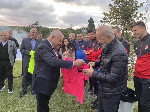 Sanatçılar Yılmaz Erdoğan ve Bülent Serttaş’ın da katıldığı yemekte, TFF reis Vekili Yalçın Orhan, Yönetim ve İcra Şurası Üyesi Müslüm Özmen, genel Sekreter Kadir Kardaş, MHK Lideri Sabri Çelik ve MHK Üyeleri, MHK Hakem Danışmanı Hugh Dallas yer aldı. Başkan Mehmet Büyükekşi, hakemlere hitaben bir konuşma yaparken muvaffakiyet dileğinde bulundu. TFF Lideri Mehmet Büyükekşi, futbolu yakından takip eden sanatkarlar Yılmaz Erdoğan ve Bülent Serttaş’a A ulusal Grup ve hakemler tarafından imzalanan hakem formalarını takdim etti.