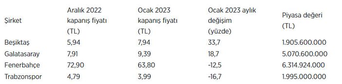 Fenerbahçe ve Trabzonspor ise geçen ay yatırımcısını üzdü. Fenerbahçe payları yüzde 12,5, Trabzonspor payları de yüzde 16,7 değer kaybetti.