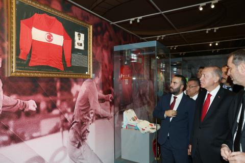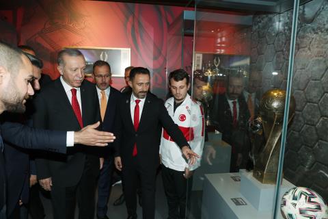 Türkiye’nin futbolda da uzun ve renkli bir geçmişe sahip olduğunu Çeşitli malzemelerle ortaya koyan standın açılış merasiminde Cumhurbaşkanı Recep Tayyip Erdoğan bir konuşma gerçekleştirdi.