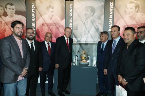“Şut ve Gol: Türk Futbol Tarihi Sergisi”ni de bu doğrultuda Kıymetli bir hizmet olarak gördüğünü belirten Erdoğan, standın hazırlanmasında emeği geçenleri kutlama etti.