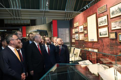 Cumhurbaşkanı Erdoğan, konuşmasının akabinde iştirakçilerle sergiyi gezdi.